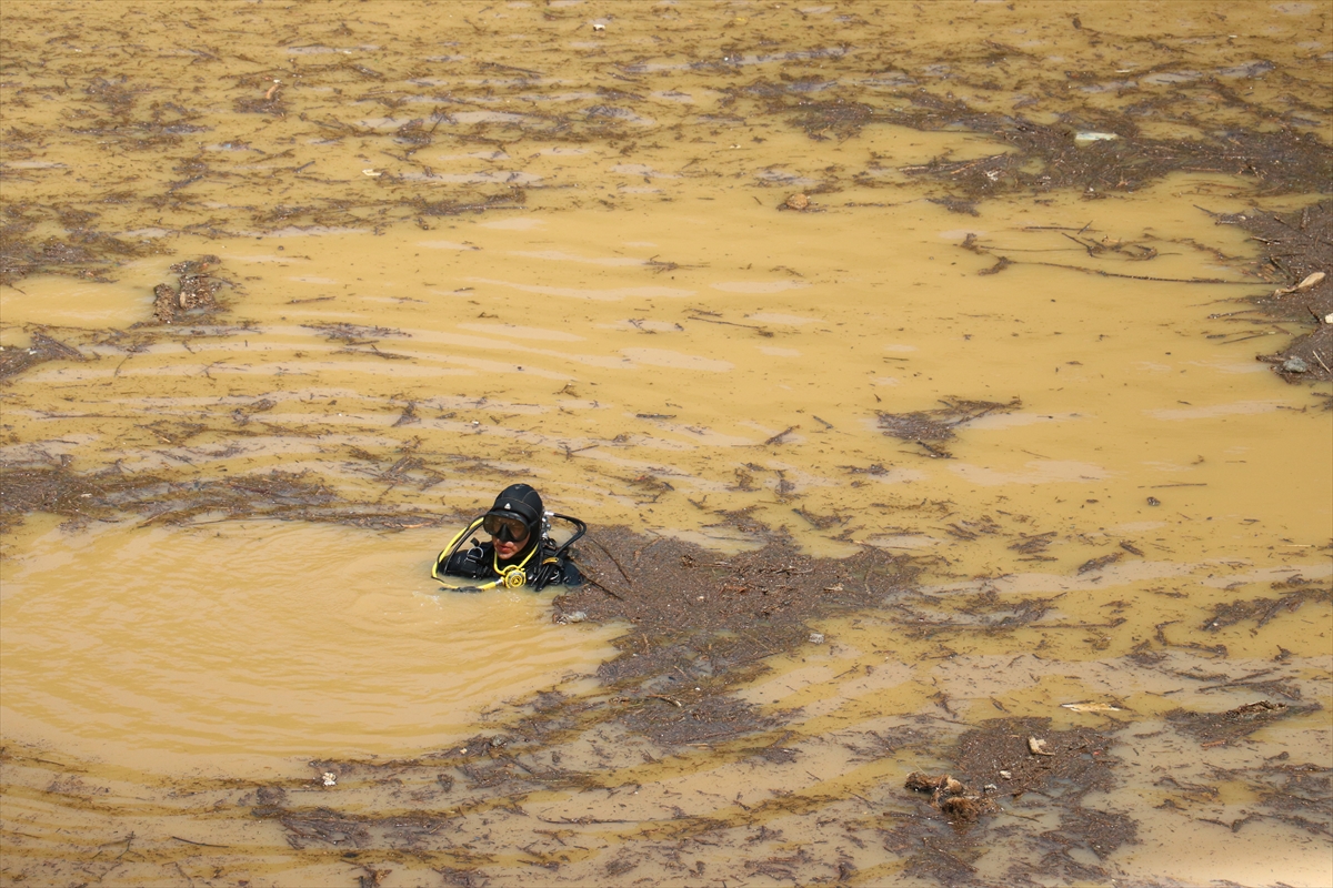 Dalgıçların su altında yaptıkları arama faaliyetlerine dronla da havadan destek sağlandı.