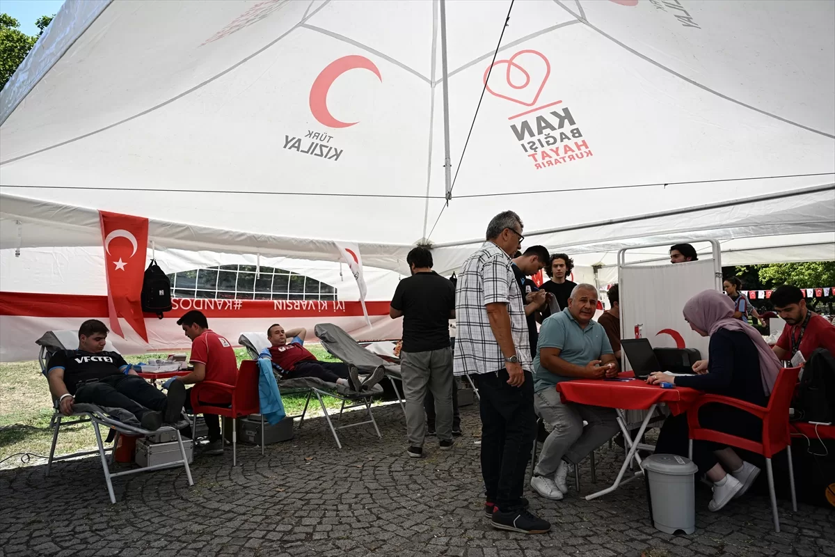 Etkinliğe katılan vatandaşlar, Kızılay'ın kurduğu çadırlarda kan bağışında bulunuyor.