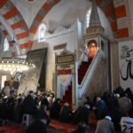 Eski Cami Uzman İmam Hatibi Salih Tatlı, gelenek dolayısıyla hutbeye kılıçla çıktı.