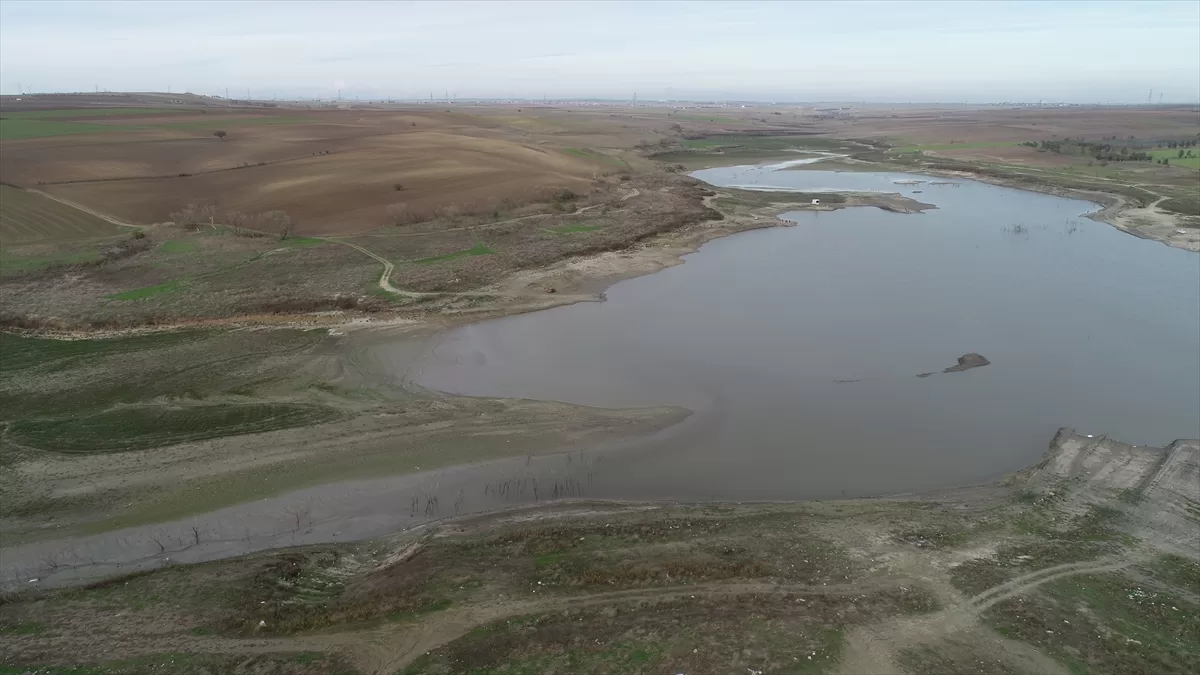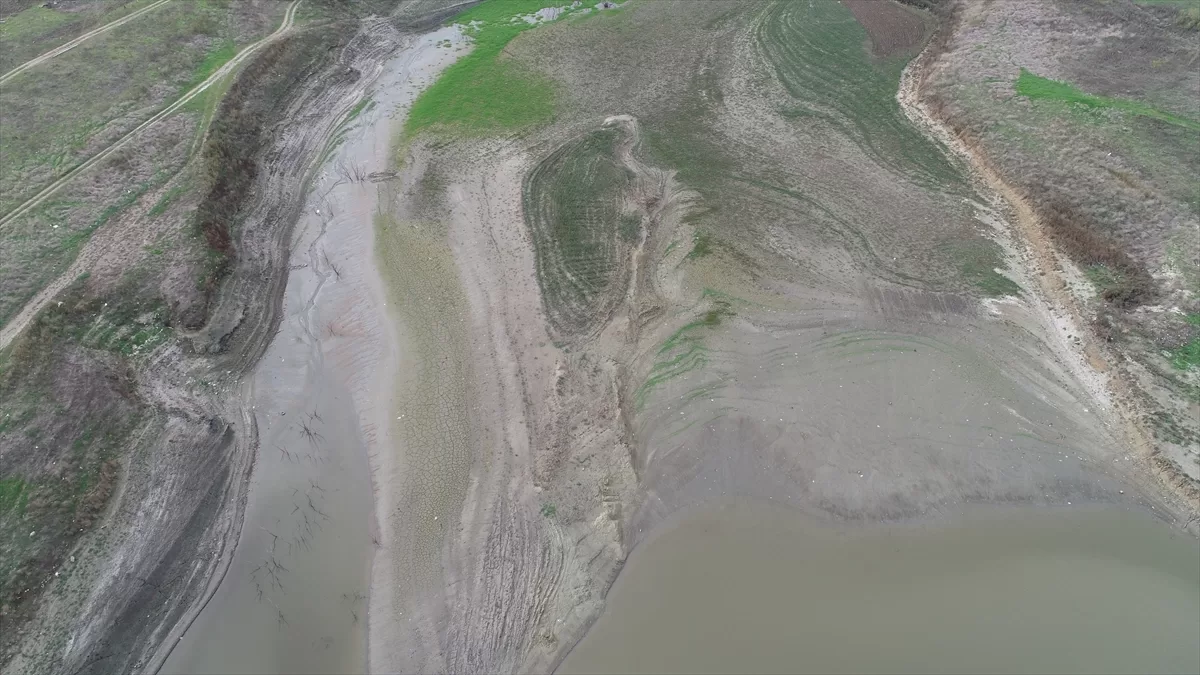 Edirne'nin Keşan ilçesine içme suyu sağlayan Kadıköy Baraj Gölü kuraklık ve yağış azlığı nedeniyle dip seviyeyi gördü.