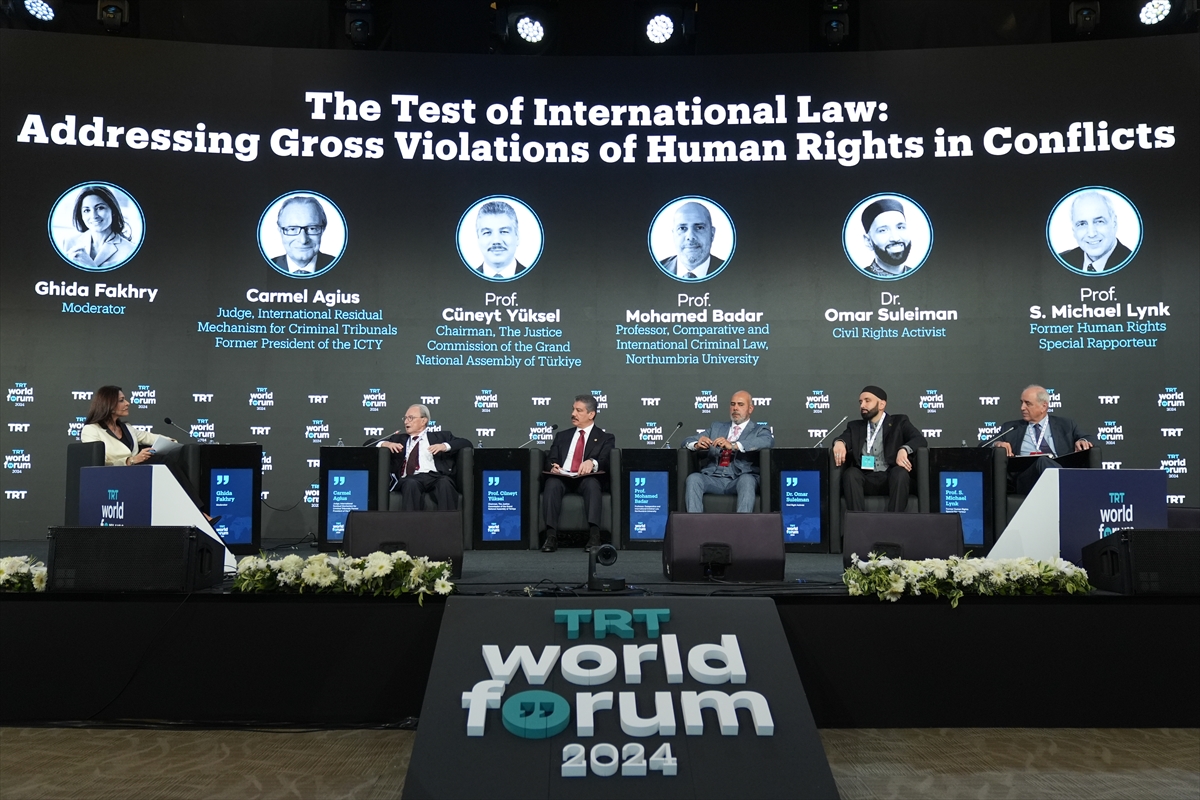 ANKARA (AA) – TRT'nin "Kırılma Noktasında Bir Dünya: Krizleri ve Dönüşümü Yönetmek" temasıyla İstanbul'da düzenlediği "TRT World Forum" etkinliğinde "Uluslararası Hukukun Sınavı: Çatışmalarda Ağır İnsan Hakları İhlallerinin Değerlendirilmesi" başlıklı panel düzenlendi.