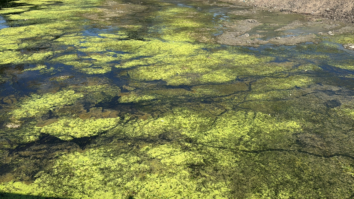 DSİ verilerine göre saniyede 2 metreküp akan nehrin köprü civarındaki yüzeyini su mercimeği ve yosunları kapladı.