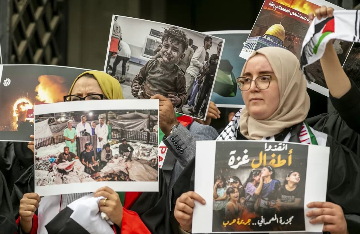 İsrail’in Gazze’ye yönelik saldırılarını protesto eden hakimler, “Katiller, Gazze’den elinizi çekin”, “İsrail’e normalleşme suçtur”, “Diren diren Filistin” sloganları attı.