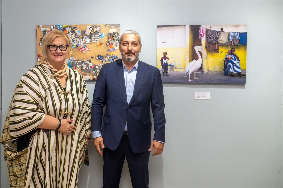 Devlet Sekreteri Sarr, Büyükelçi Sağman ve Dakar YEE Direktörü Merve Işık Efe, Özdel ile sergiyi gezdi ve fotoğraflar hakkında bilgi aldı.