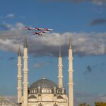 Test uçuşu boyunca ay yıldızlı jetler akrobatik hareketler sergiledi.