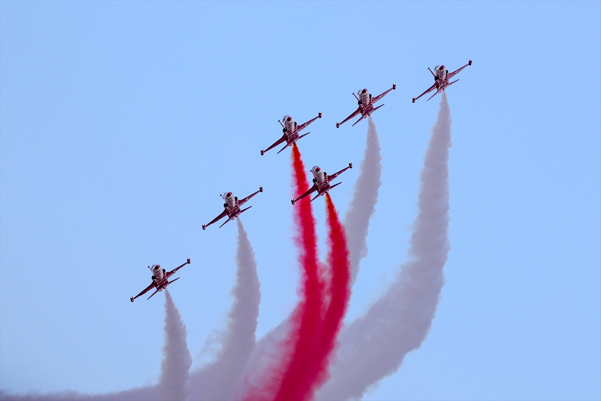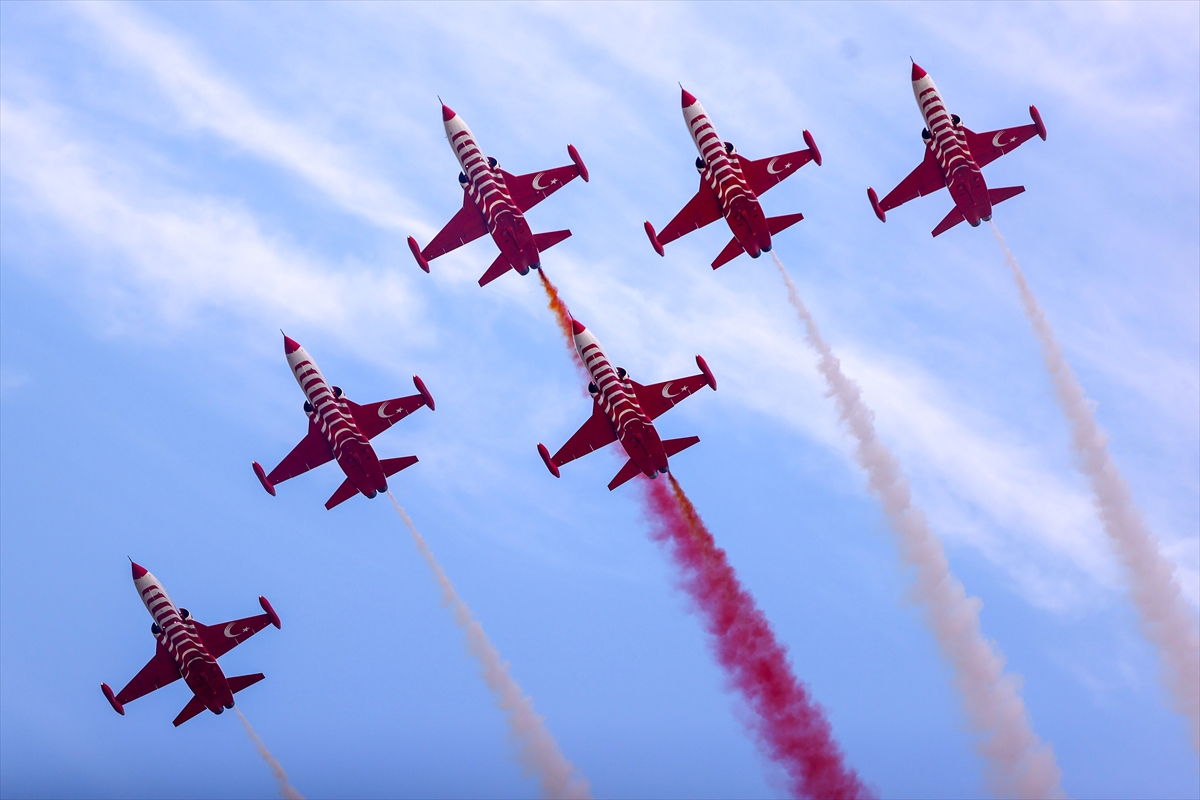 Uçakların duman atarak tırmanış, dönüş, alçalma ve yakın uçuş hareketleri, izleyenleri etkiledi.