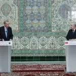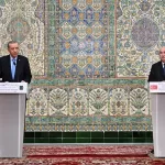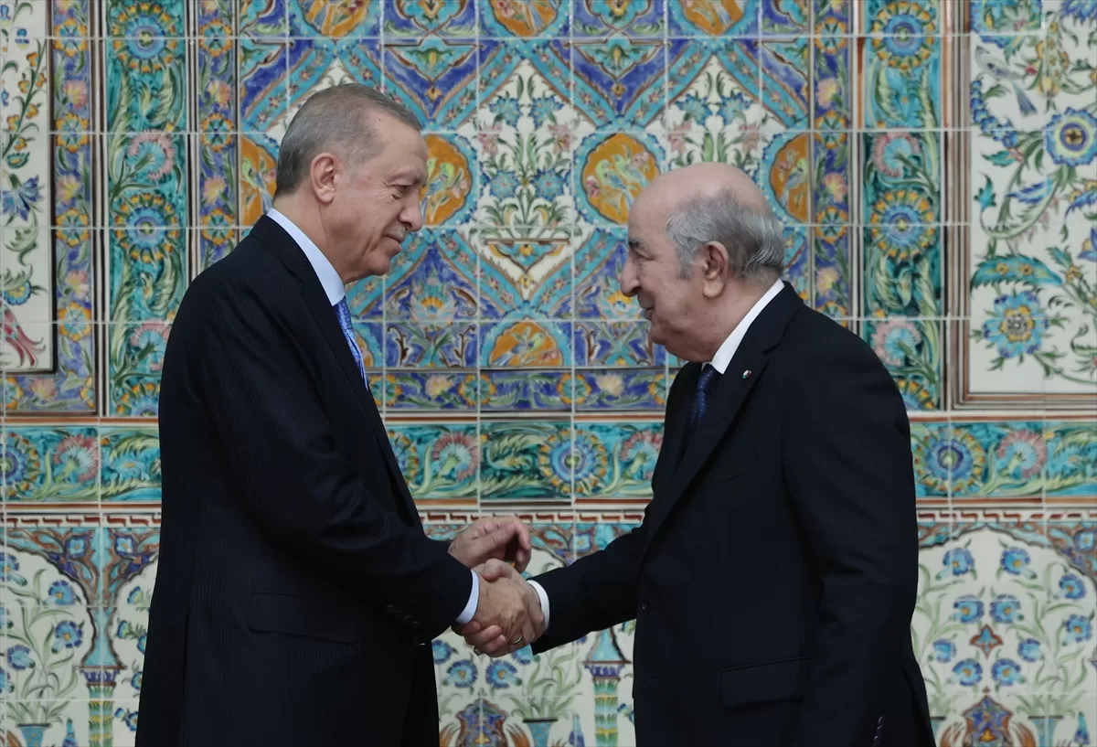 Cezayir Cumhurbaşkanlığı Sarayı'ndaki baş başa görüşmenin ardından Cumhurbaşkanı Erdoğan ile Cezayir Cumhurbaşkanı Tebbun, Türkiye-Cezayir Yüksek Düzeyli İşbirliği Konseyi İkinci Toplantısı'na başkanlık etti.