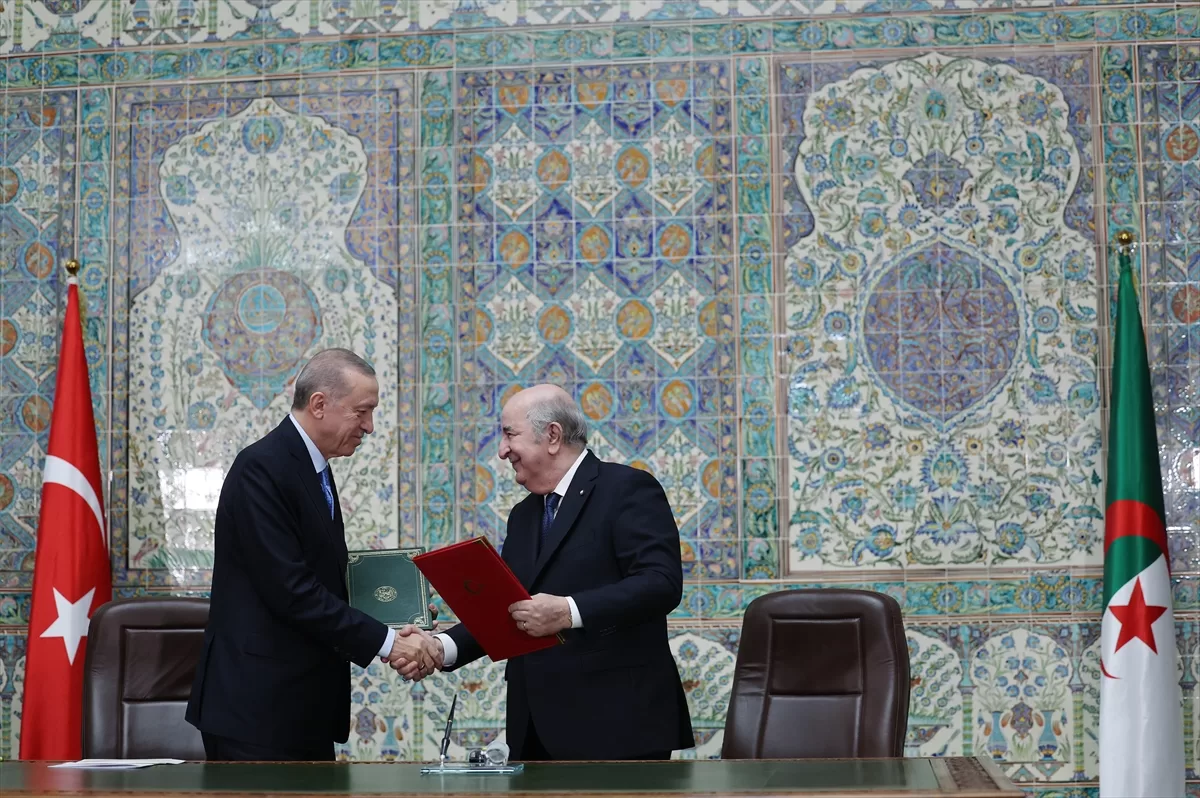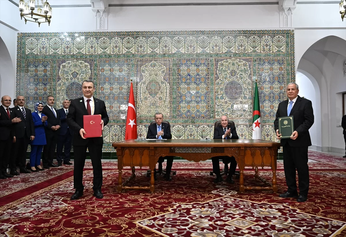 CEZAYİR (AA) – Cumhurbaşkanı Recep Tayyip Erdoğan ile Cezayir Cumhurbaşkanı Abdülmecid Tebbun, "Türkiye Cumhuriyeti ve Cezayir Demokratik Halk Cumhuriyeti Arasındaki Yüksek Düzeyli İşbirliği Konseyi İkinci Toplantısı Ortak Bildirisi"ne imza atarken, iki ülke arasında farklı alanlarda 12 işbirliği anlaşması da imzalandı.