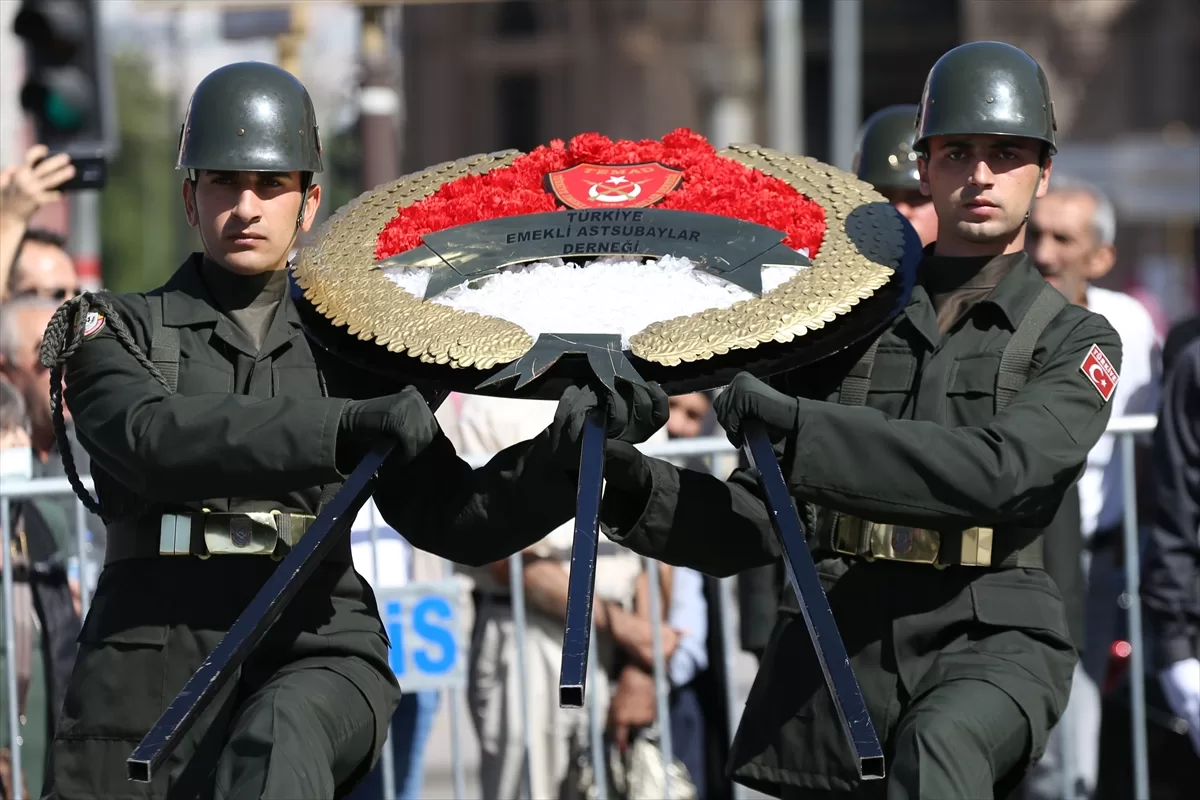 Konuşmanın ardından Atatürk Anıtı önüne, Ankara Valiliği, Türk Silahlı Kuvvetleri, Ankara Büyükşehir Belediyesi ve Türkiye Muharip Gaziler Derneği çelenkleri bırakıldı.