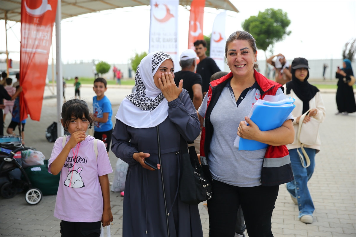 Adana'da ülkelerine geri dönmek isteyen Suriyeliler, Sarıçam Gönüllü Geri Dönüş Koordinasyon Merkezi'ne başvuruyor.