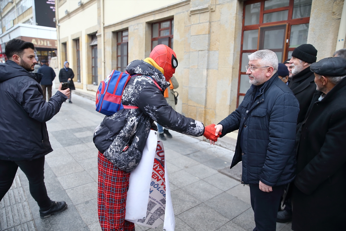 ÇORUM (AA) – "Örümcek Adam" kostümüyle Türkiye'yi gezme hayaliyle memleketi İzmir'den yola çıkan Salih Ayaz Koç, Çorum'da vatandaşlarla bir araya geldi.