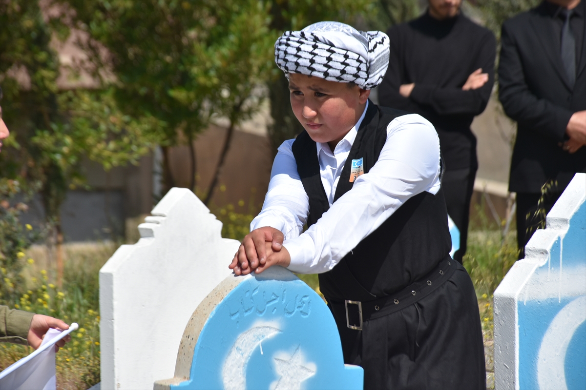 Saygı duruşuyla başlayan törende daha sonra şehitler için Kur'an-ı Kerim okundu. Aileler, kaybettikleri yakınlarının mezarı başında dua etti.