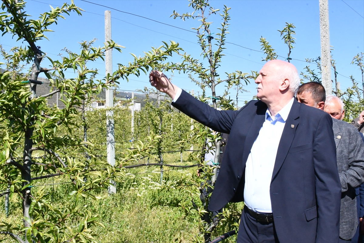 BURSA (AA) – Türkiye Ziraat Odaları Birliği (TZOB) Genel Başkanı Şemsi Bayraktar, Bursa'nın İznik ilçesinde zirai dondan etkilenen tarım alanları ve bahçelerde incelemelerde bulundu.