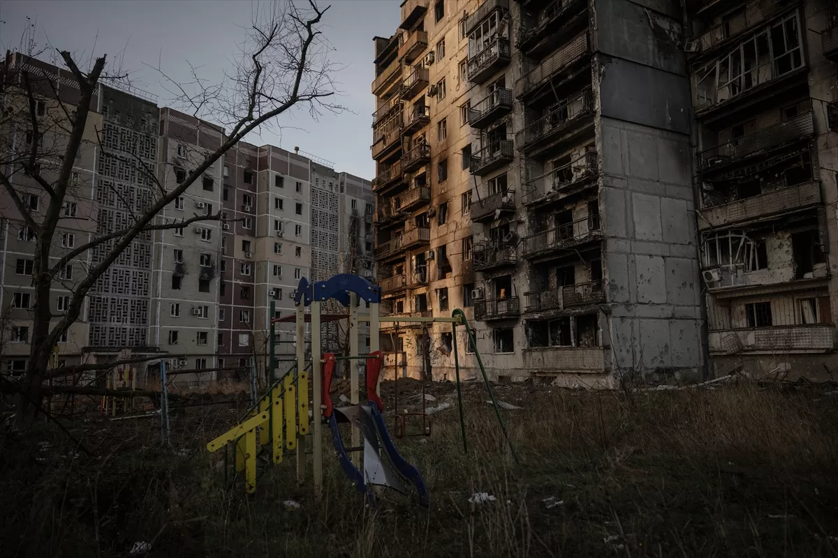 Terk edilmiş evleri, eşyaları, kırılan camları, pencerelerden görülen yanmış perdeleri ve bir zamanlar çocukların neşeli kahkahalarıyla şenlenen ancak çatışmalarda hasar gören çocuk parklarıyla Vugledar, savaşın acı yüzünü yansıtıyor.