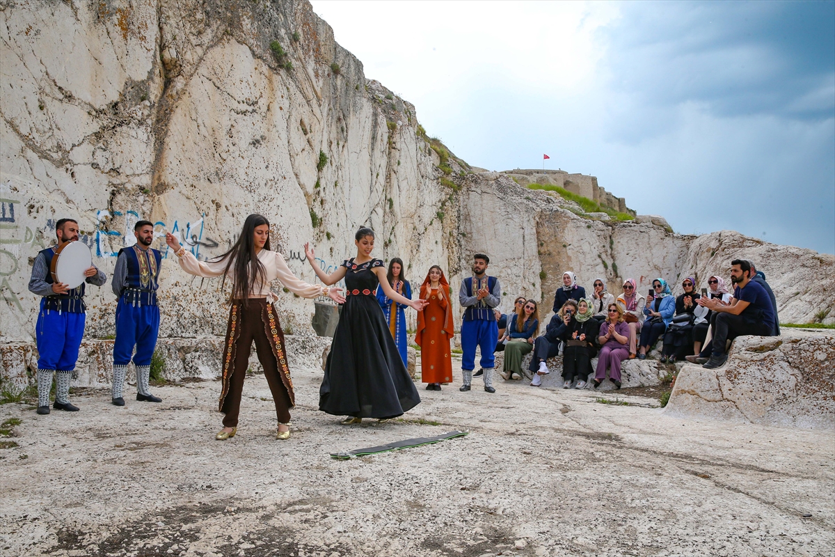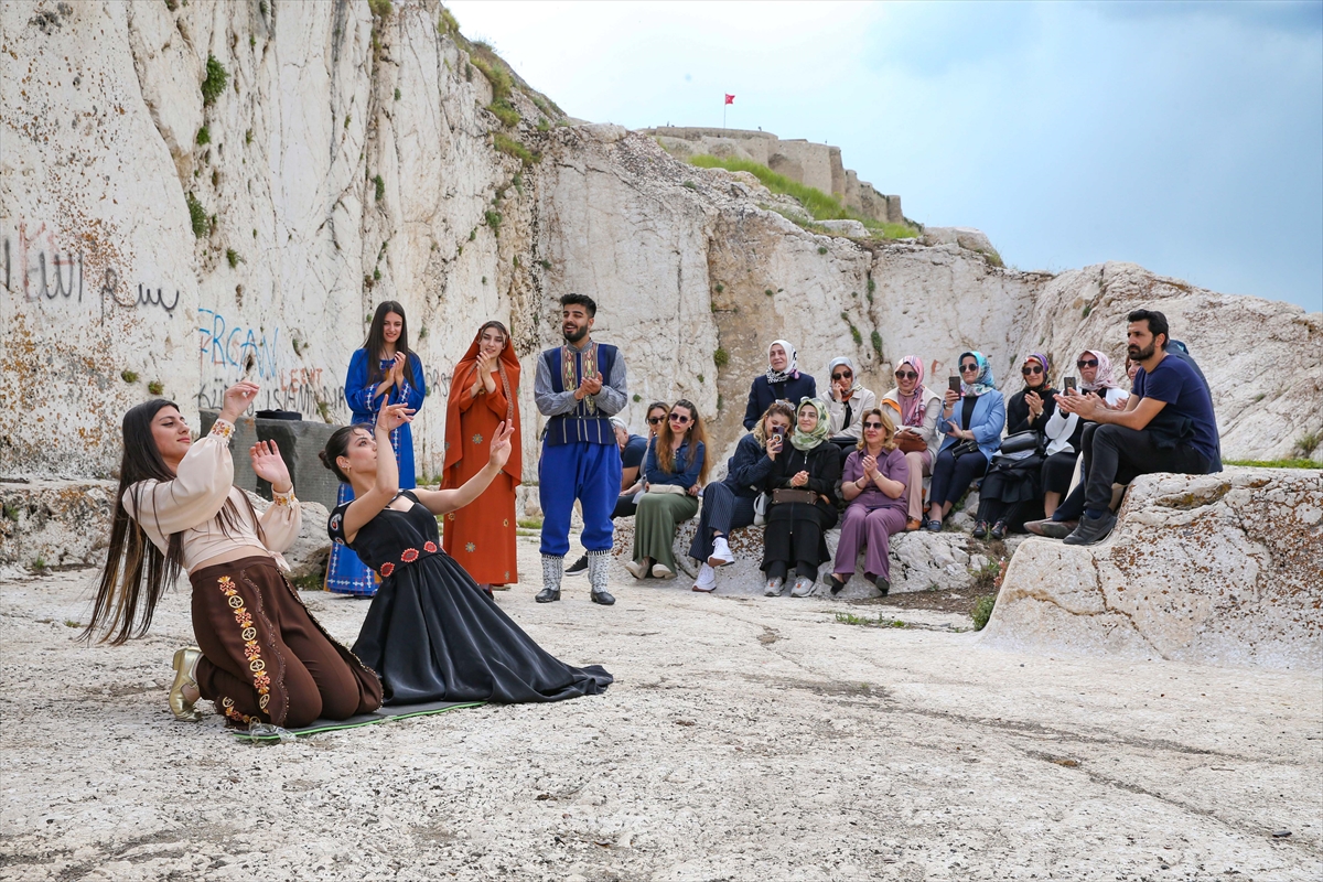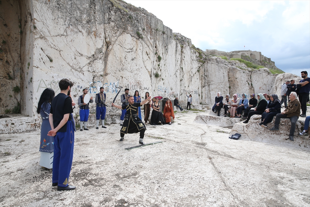 Van Kalesi'ndeki "Analı Kız Kutsal Alanı" olarak adlandırılan bölümde gerçekleştirilen etkinlikte, Van Olgunlaşma Enstitüsünce kitabe ve bulunan eserlerdeki resimlerden esinlenilerek hazırlanan Urartu kostümlerini giyen oyuncular, Urartu medeniyetinin son dönemlerinde yaşananları canlandırdı.