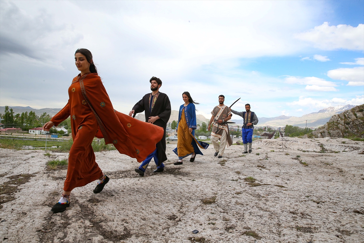 VAN (AA) – Van'da Müzeler Haftası etkinlikleri kapsamında Urartu kostümleri giyen tiyatro ekibi, Van Kalesi'nde Urartuların son dönemini anlatan oyunu sahneledi.