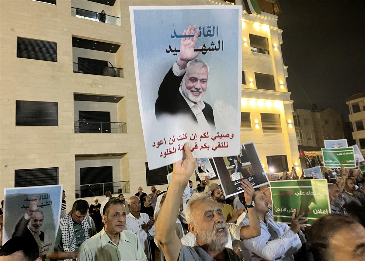 AMMAN (AA) – Ürdün'deki Tel Aviv Büyükelçiliği yakınlarında Hamas'ın Siyasi Büro Başkanı İsmail Heniyye'ye yönelik suikast protesto edildi.
