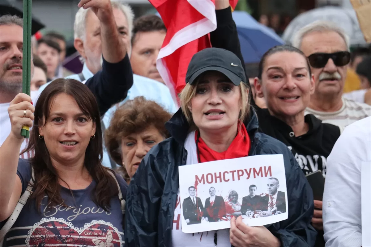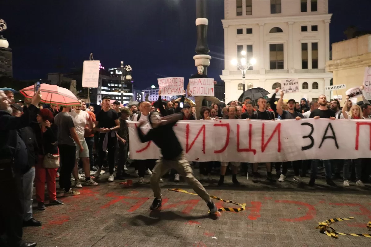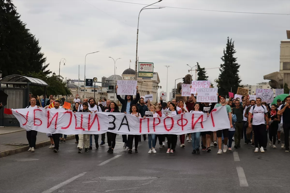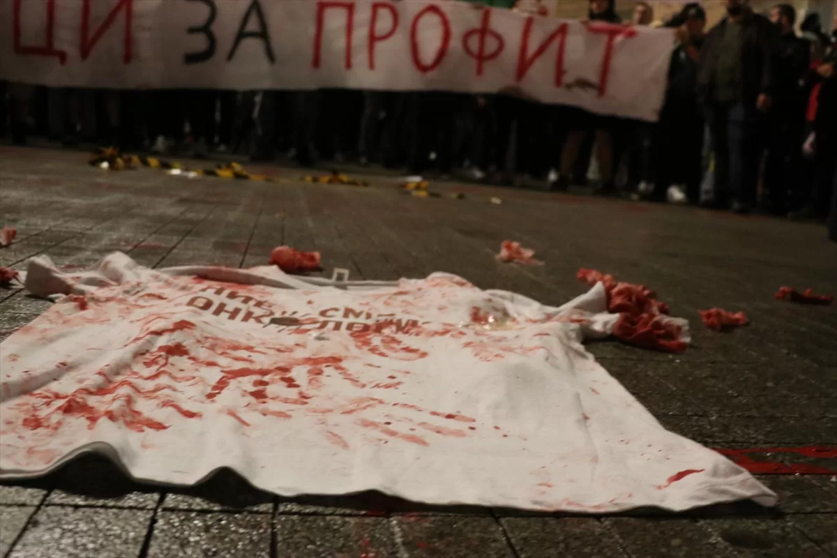 Hükümet binası önünde toplanan gruptakiler, Kuzey Makedonya Başbakanı Dimitar Kovaçevski ve Sağlık Bakanı Fatmir Mexhiti'nin istifasını talep etti.