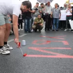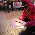 Olayı protesto eden pankartlar taşıyan göstericiler, kırmızı boyayla hükümet binası önünden geçen yola "katil" yazdı.