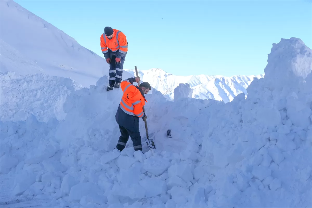Kar kalınlığının yer yer 3 metreyi bulduğu 3 bin rakımlı Karabet Geçidi’ne ulaşan ekipler, düşen çığlar nedeniyle yolda biriken kar kütlelerini temizledi.