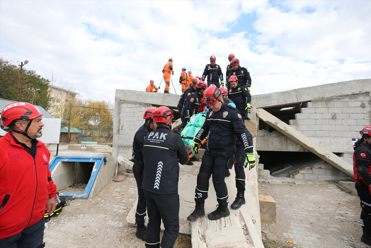 AFAD yerleşkesindeki eğitim sahasında düzenlenen tatbikata Jandarma Arama Kurtarma (JAK), Polis Arama Kurtarma (PAK), UMKE, Hayata Bir Dokunuş Arama ve Kurtarma (HADAK) ile Hak Arama Kurtarma ve itfaiye ekipleri katıldı.