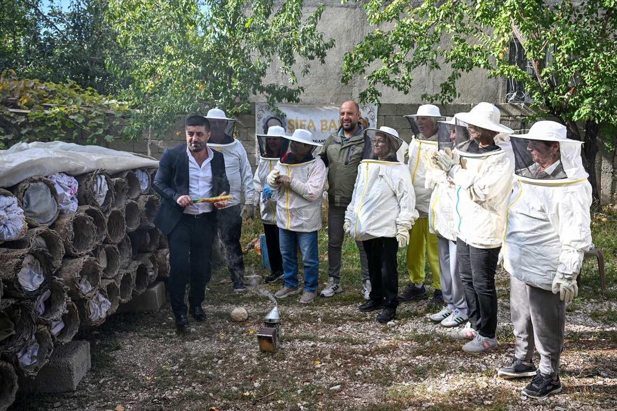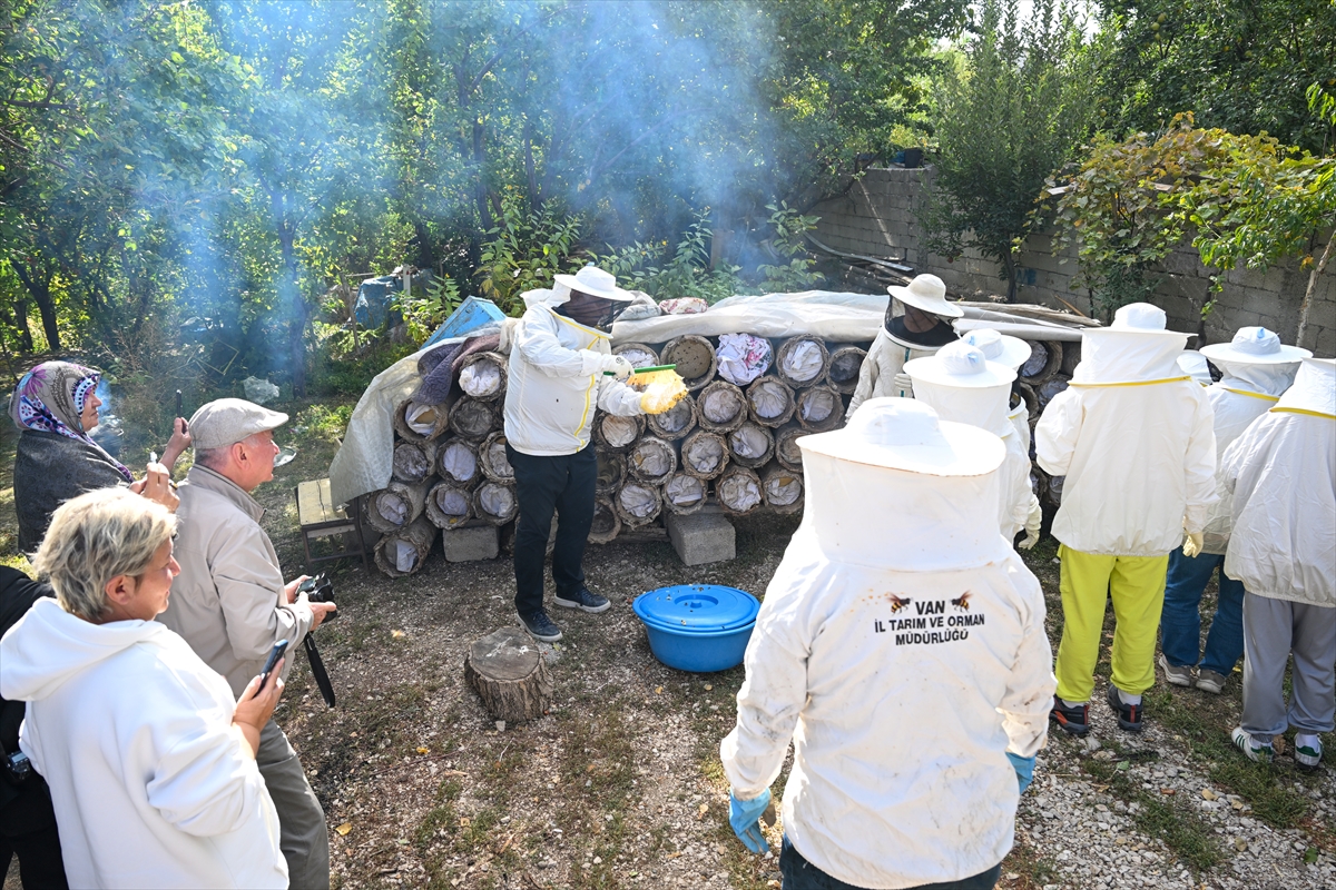 VAN (AA) – Giresun'dan Van'a gelen 50 kişilik turist kafilesi, bir arıcının üretim sahasını ziyaret ederek arıcı kıyafetleri giydi ve karakovan balı hasadına katıldı.