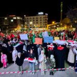 Van'da Filistin'e Destek Platformu öncülüğünde İpekyolu ilçesindeki Kent Park'ta bir araya gelen vatandaşlar, Türk ve Filistin bayraklarıyla sloganlar atarak Kent Meydanı'na kadar yürüdü.