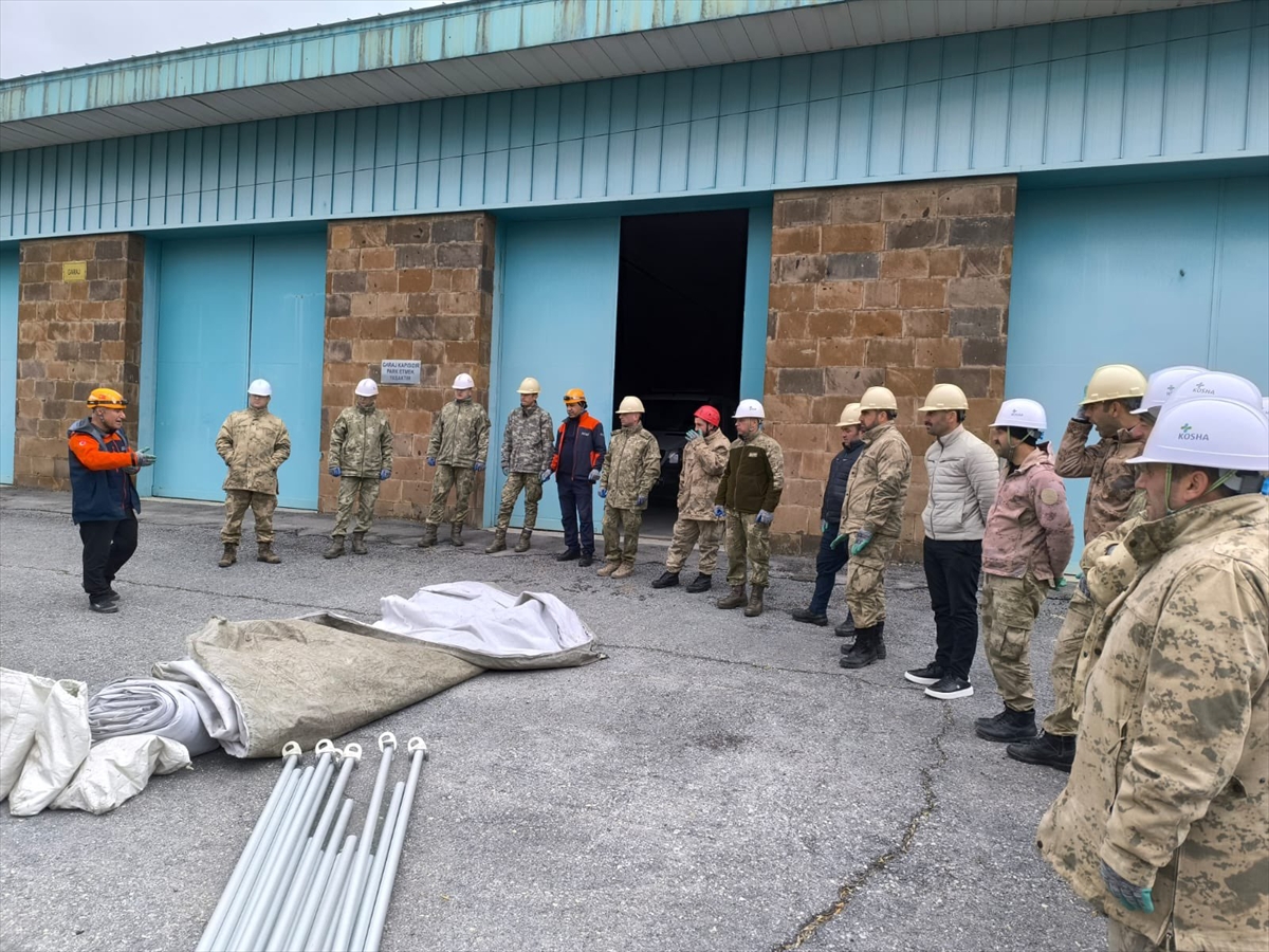 Eğitimlerin ardından AFAD görevlileri ile güvenlik korucuları, enkazda arama ve kurtarma tatbikatı yaptı.