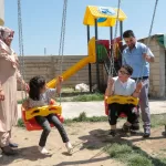 Kuzenleriyle salıncağa binen ve kaydıraktan kayan Yusuf, ekiplere teşekkür etti.