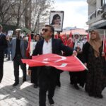 Menekşe Sokak'ta bir araya gelen aileler, Türk bayrakları ve evlatlarının fotoğraflarını taşıyarak DEM Parti İl Başkanlığı binasının önüne yürüdü.
