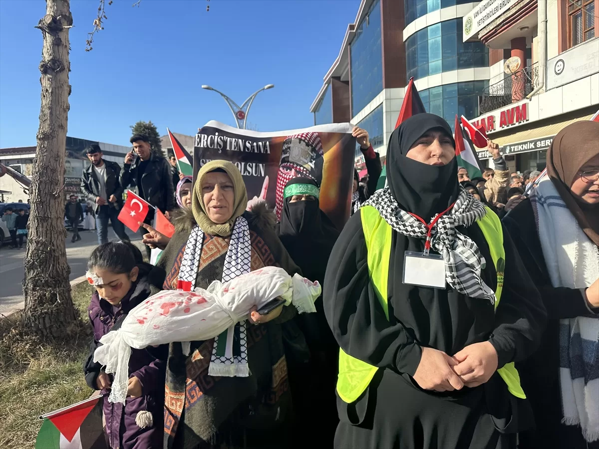 VAN (AA) – Van'ın Erciş ilçesinde vatandaşlar, düzenlenen yürüyüşle İsrail'in Gazze'ye yönelik saldırılarına tepki gösterdi.