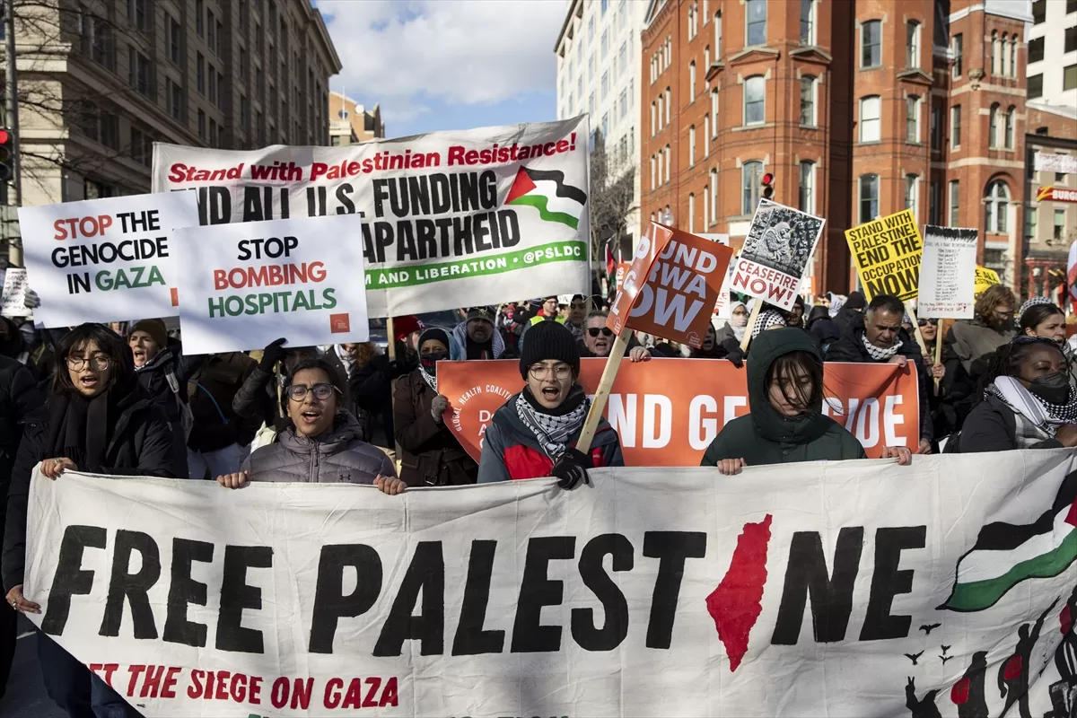 WASHINGTON (AA) – ABD'nin başkenti Washington'da toplanan binlerce kişi, dondurucu soğuğa rağmen Kongre binasına yürüyerek, "Gazze'de acil ateşkes" çağrısında bulundu.