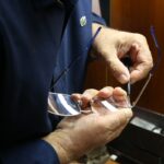 Sebebi, eskiden gözlük camları mineraldi, yani camdı. Organik mika cam yoktu. Kalıp kartondan kalıp kesiliyordu, çerçeveye alıştırılıyordu. O karton kalıba göre cam elmasla kesiliyordu, ondan sonra el pensiyle kırılıyordu. Kırılan gözlüğün kenarının balık sırtı v şeklinde tıraşlanması gerekiyordu. O el taşıyla yapılırdı. Gözlük camı yaparken sürtüle sürtüle zaman içinde parmakların izi silinmiş."