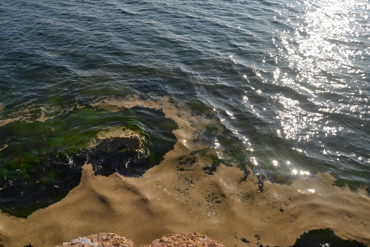 Sahildeki müsilaj nedeniyle su yüzeyinde köpüksü tabaka oluştu.