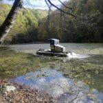 Konya Milli Parklar 8. Bölge Müdürlüğünden getirtilen temizlik aracıyla, Deringöl ve Nazlıgöl'de su yüzeyini kaplayan istilacı bitkiler ile sudaki dal ve orman atıkları toplandı.