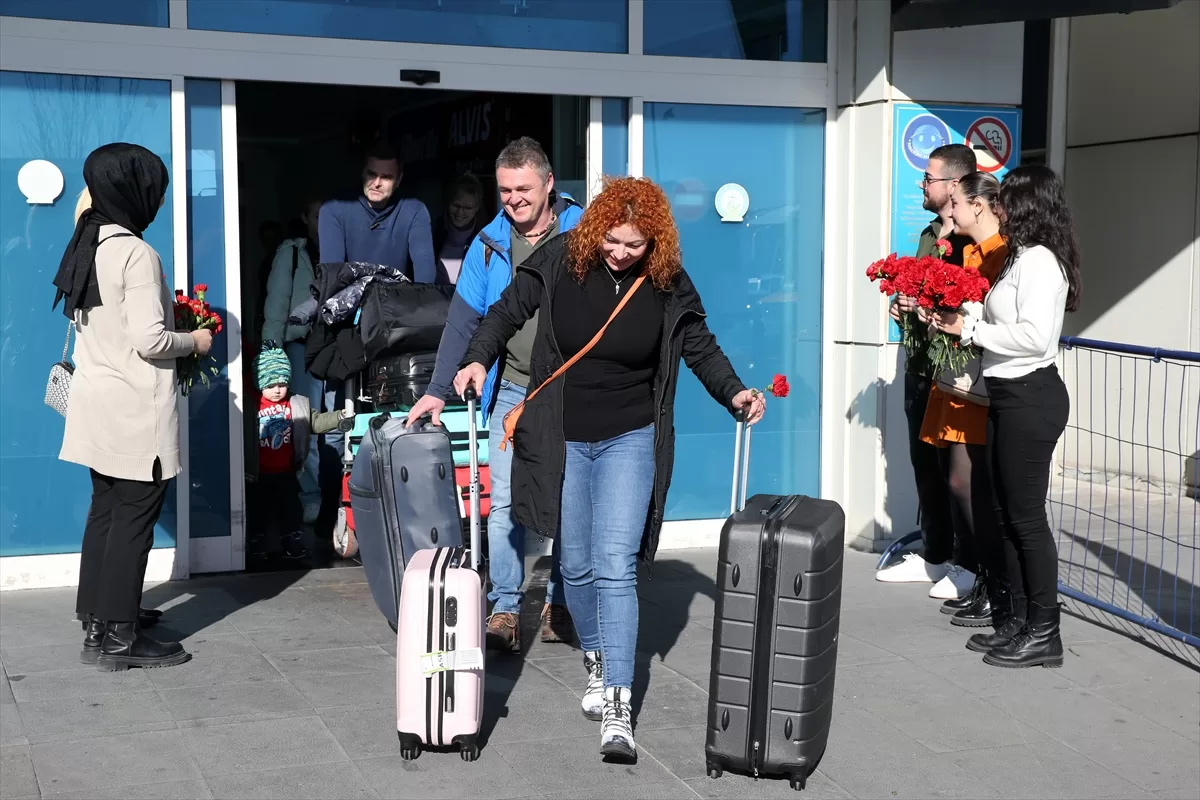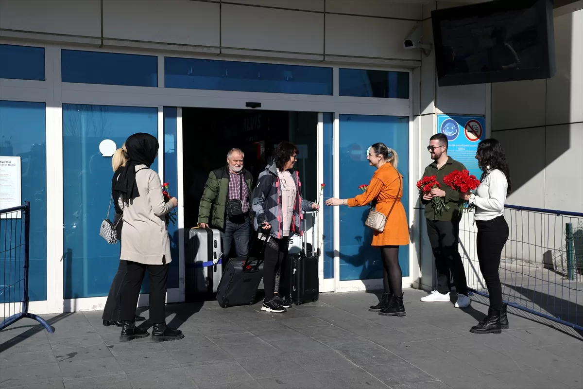 "Hoş geldiniz" anlamına gelen "Vitejte" yazılı pankart ve çiçeklerle karşılanan turistler, daha sonra otellere geçti.