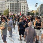 Göstericiler, son günlerde kruvaziyer gemileriyle bazı Yunan adalarına gelen İsrailli turistlere yönelik protestolara müdahale eden Yunan polisini de kınadı.
