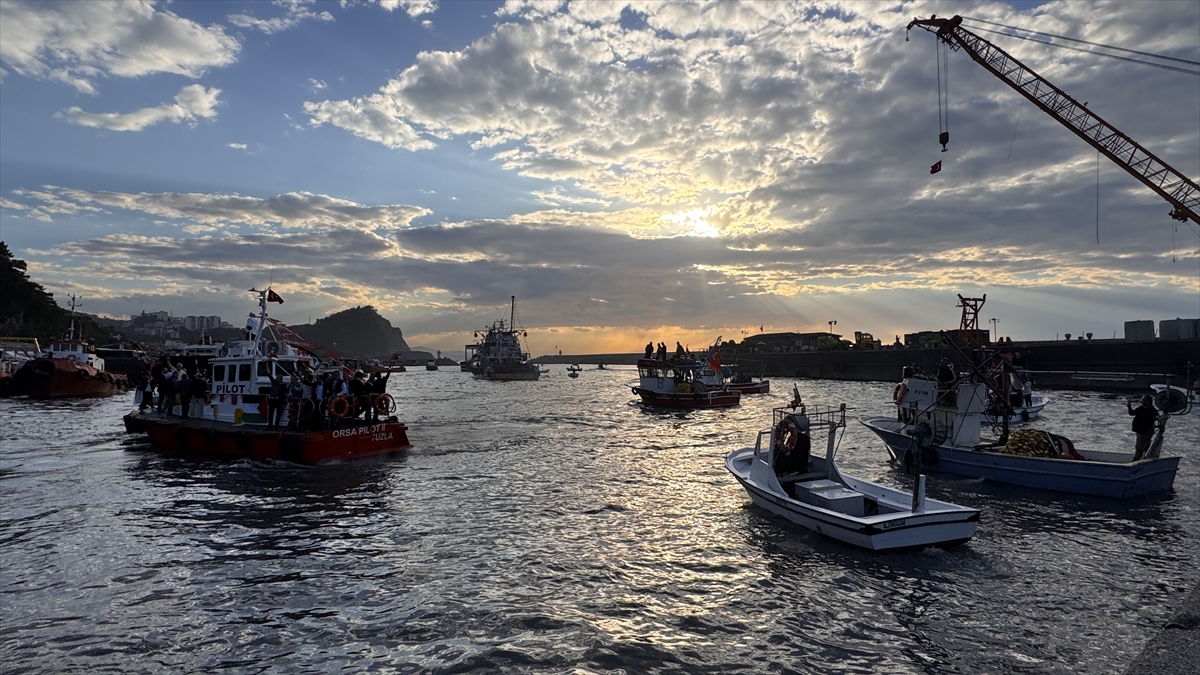 Karadeniz'e açılan gemi ve tekneler dönüşte sahildeki vatandaşlar tarafından alkışlarla karşılandı.