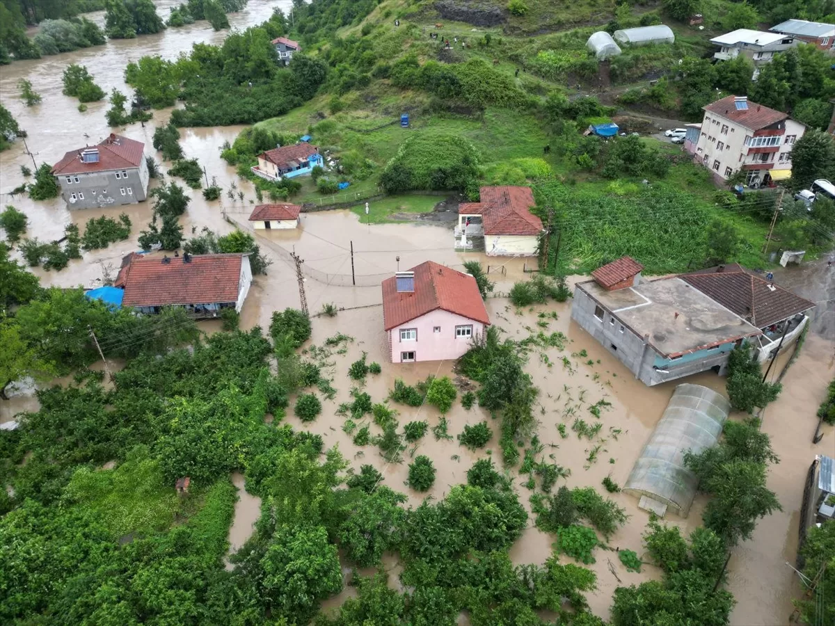 Çaylıoğlu köyünde de dere taştı, bazı evler hasar gördü.