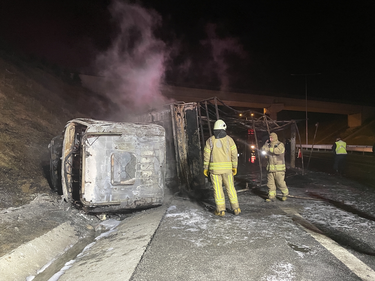 Kuzey Marmara otoyolunda alev alan kamyonun şoförü öldü