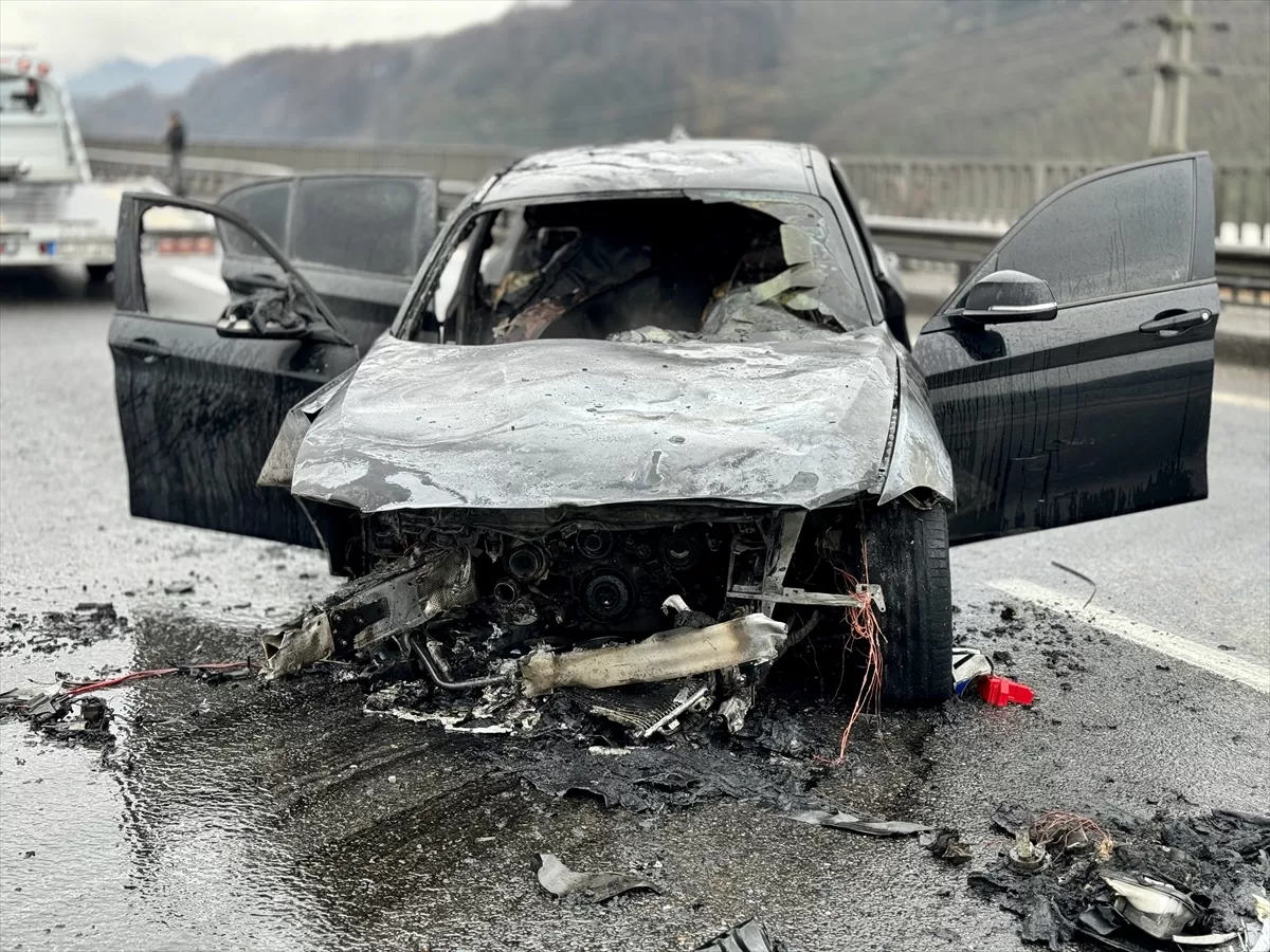 Anadolu Otoyolu'nda kaza yapan otomobil yandı