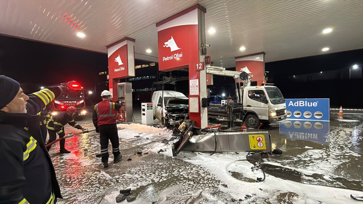 Kocaeli'de akaryakıt pompasına çarpan hafif ticari araçtaki 2 kişi yaralandı