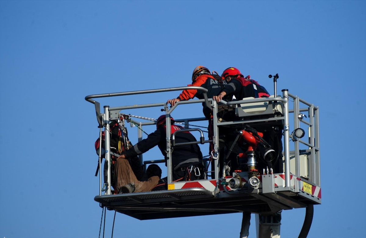 İzmir'de 70 metrelik bacadan düşen iki işçi 4 saatlik çalışmayla kurtarıldı