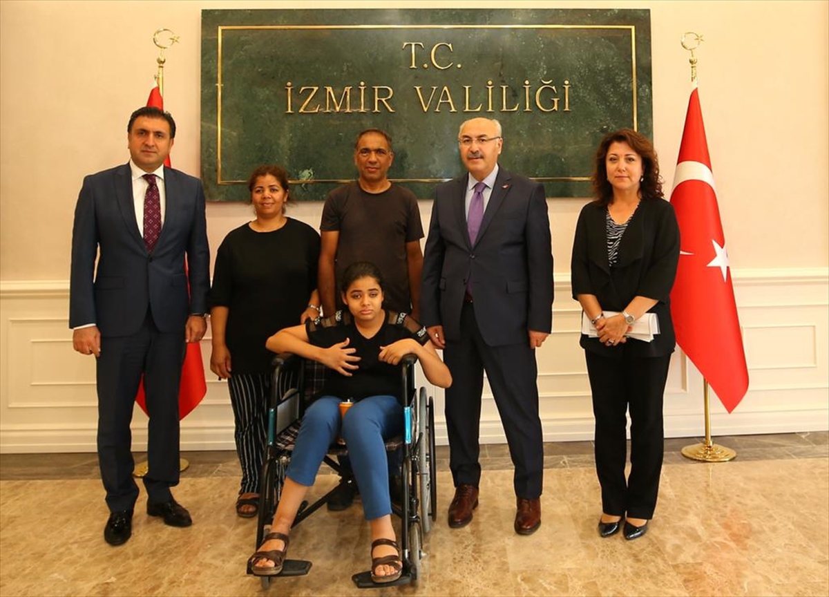İZMİR (AA) – İzmir Valisi Yavuz Selim Köşger, yürüme güçlüğü çeken ve babasının sınıfına kadar sırtında taşıdığı haberleriyle gündeme gelen 14 yaşındaki engelli Sema Durna'ya tekerlekli san...
