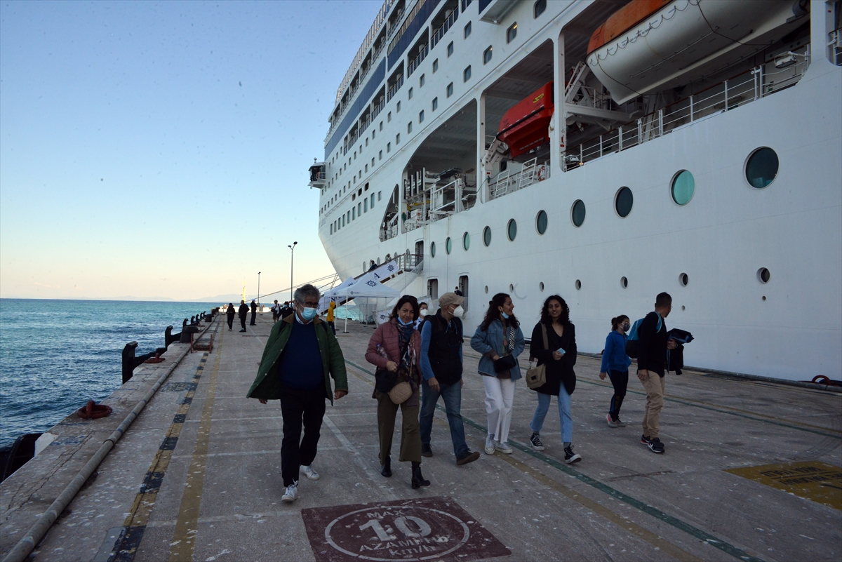 Çeşme'ye yaklaşık 3 yıl aranın ardından ilk kruvaziyer yanaştı