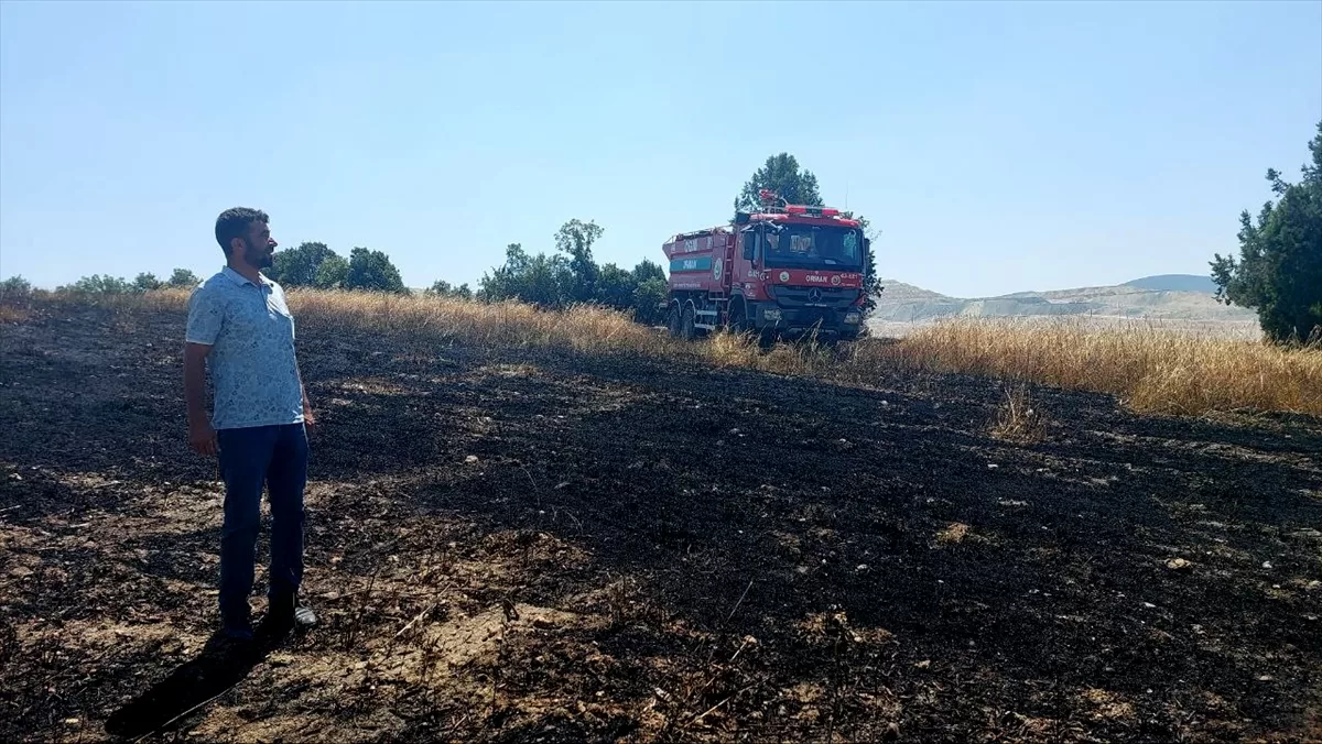 Kütahya'da biçerdöverde çıkan yangın 7 dönümlük tarlayı kül etti