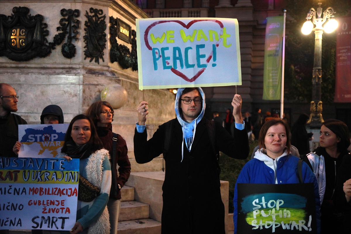 BELGRAD (AA) – Sırbistan'da yaşayan Rusya vatandaşları, Rusya Devlet Başkanı Vladimir Putin'in kısmi seferberlik ilan etmesine tepki göstermek için başkent Belgrad'da toplandı. Uk...