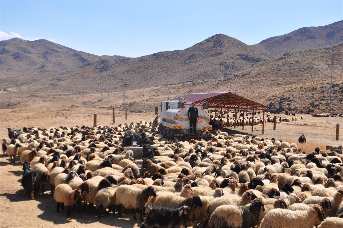 Bitlis'te kırsalda susuz kalan koyunlara belediye ekipleri tankerle su taşıdı