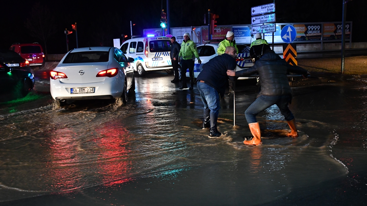 Sivas'ta içme suyu hattında patlama oldu, cadde ve sokakları su bastı