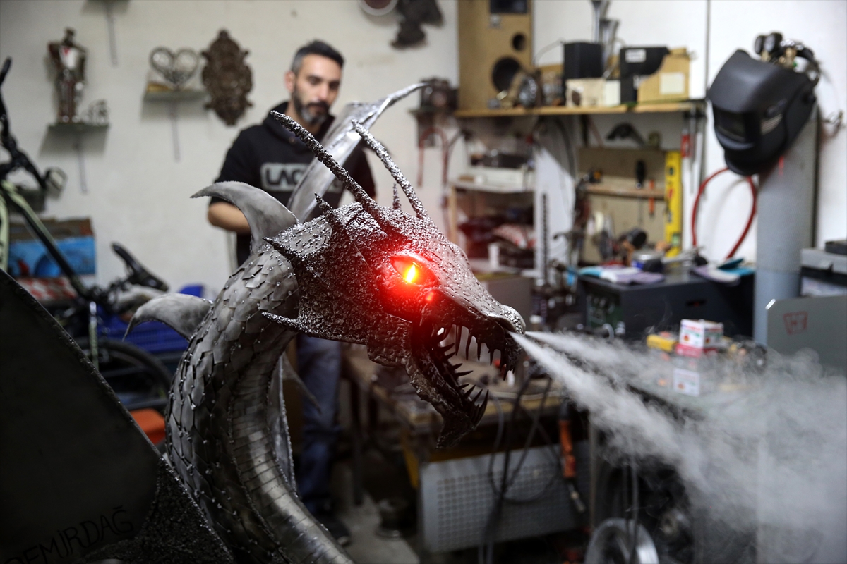 SİVAS (AA) – Sivas'ta bir kaynak ustası, metal malzemeler kullanarak ağzından alev çıkartan "ejderha" tasarladı. Selçuklu Mahallesi'nde kaynak ustalığı yapan meslek lisesi me...